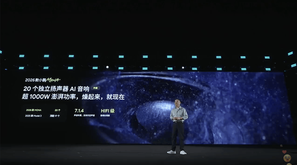 ▲小鵬2026款MONA M03搭載20個揚聲器