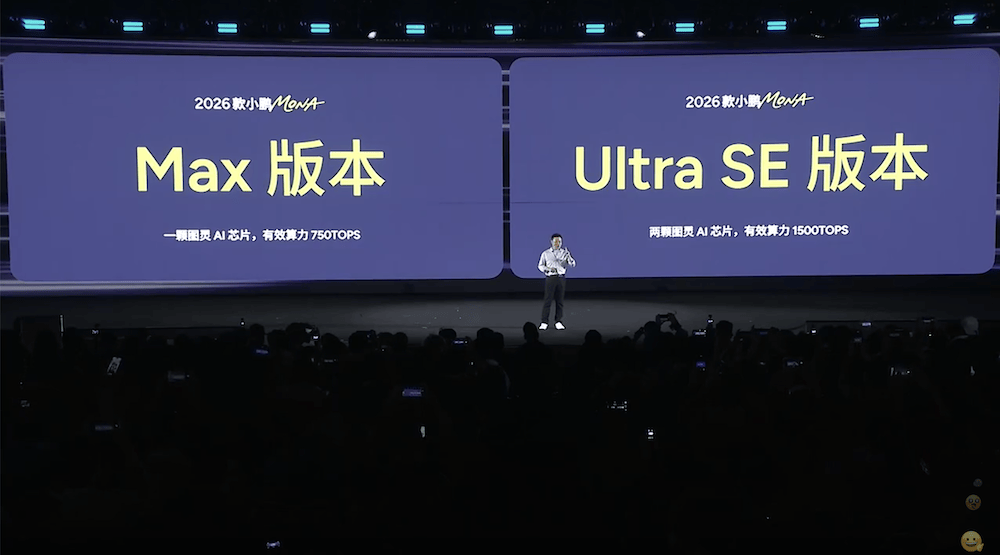 智駕方面,2026款MONA M03分為兩個智駕版本,分別是搭載一顆圖靈AI芯片的Max版本和搭載兩顆圖靈AI芯片的Ultra SE版本,最高算力可達1500TOPS。