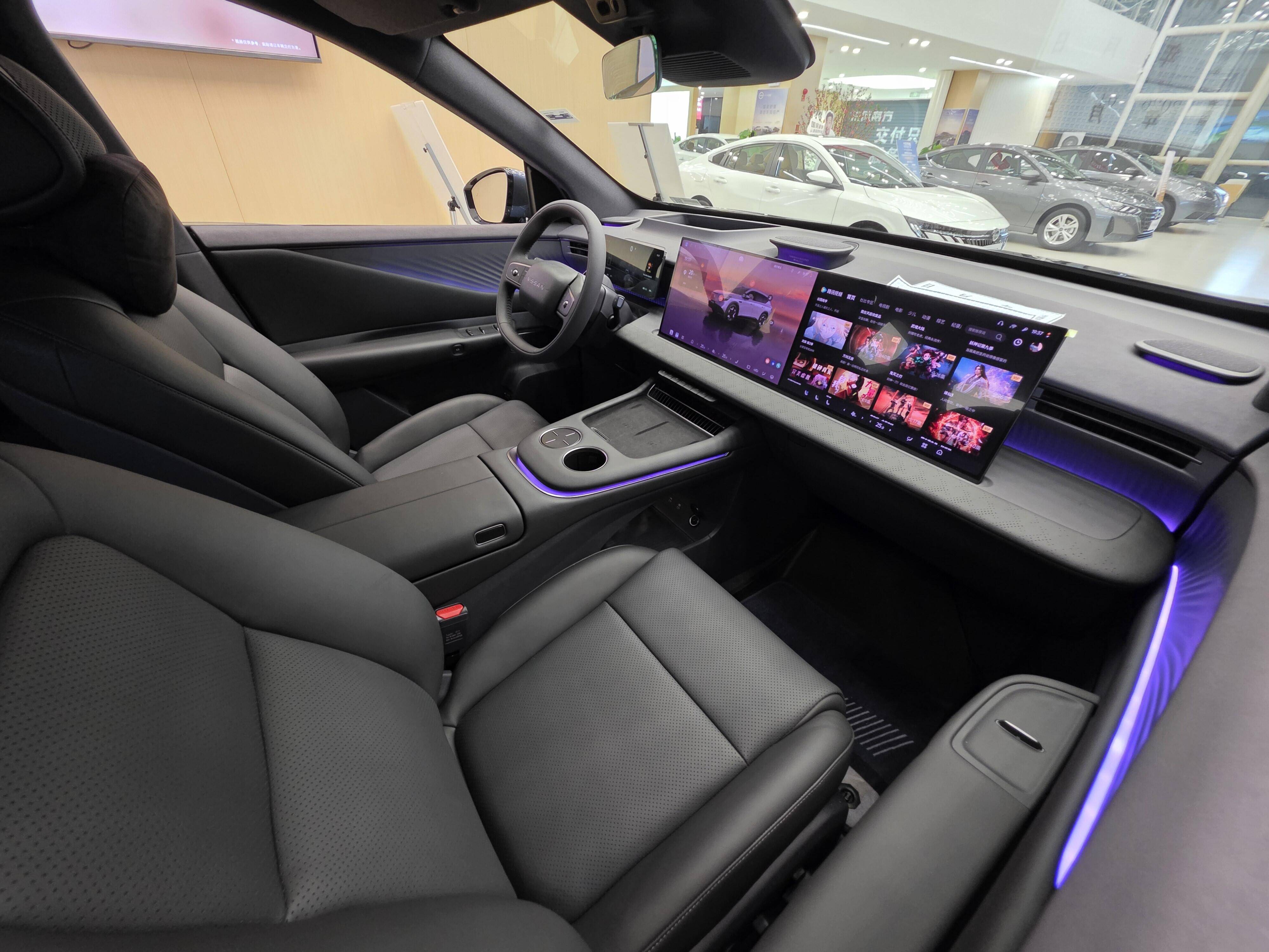 車身尺寸長寬高4870/1920/1680mm,軸距2917mm。車身側(cè)面呈現(xiàn)出簡潔飽滿的運動姿態(tài),而且無框車門、隱藏式門把手、19/20英寸兩種造型雙色輪轂以及貫穿式尾燈的加持,又帶來了時尚前衛(wèi)屬性,并提供摩納哥紫、翡冷翠綠、流光銀、墨海藍(lán)、曜石黑、霜雪白共6款配色,以及曜石黑/霜雪白雙拼色可選。另外還可選裝“量子光幕”尾燈,可智能交互、自定義燈語,很有儀式感。