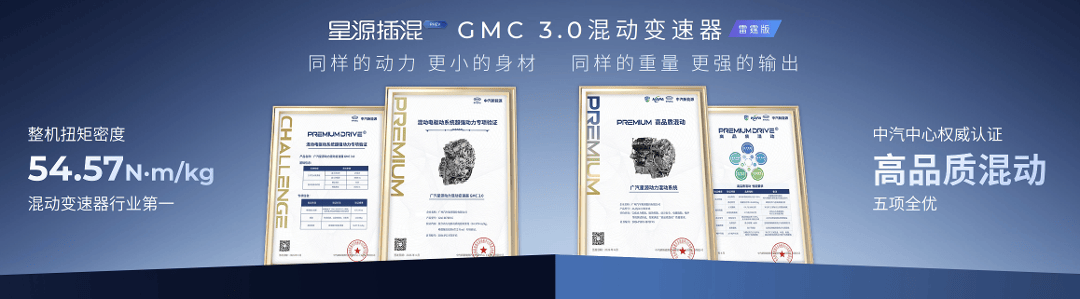GMC 3.0混動變速器雷霆版主打強動力和高集成,最大扭矩超6700N·m,行業第一;整機扭矩密度達54.57Nm/kg,行業領先;驅動電機峰值功率205kW@410V,行業第一!