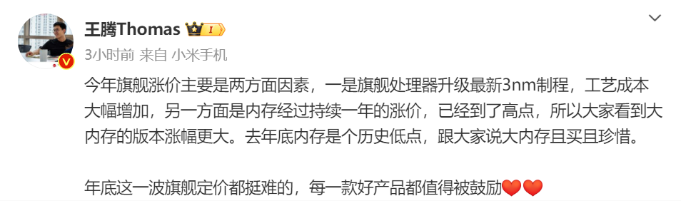 王騰表示,今年旗艦手機漲價的原因其一是旗艦處理器升級最新3nm制程,工藝成本大幅增加;其二是內(nèi)存經(jīng)過持續(xù)一年的漲價已經(jīng)到了高點,所以大內(nèi)存版本機型價格漲幅更大。