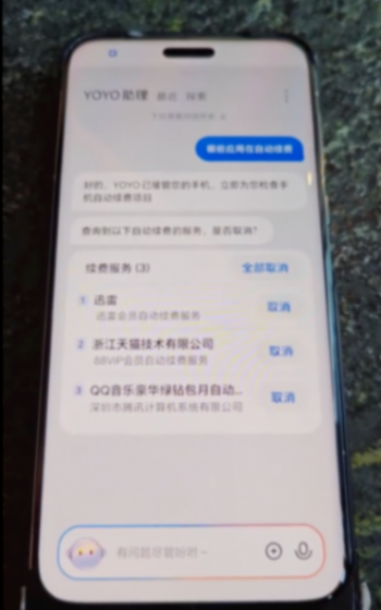 結合視頻來看,用戶在喚醒語音助理之后,即可通過一句話來取消手機中的所有自動續費項目。