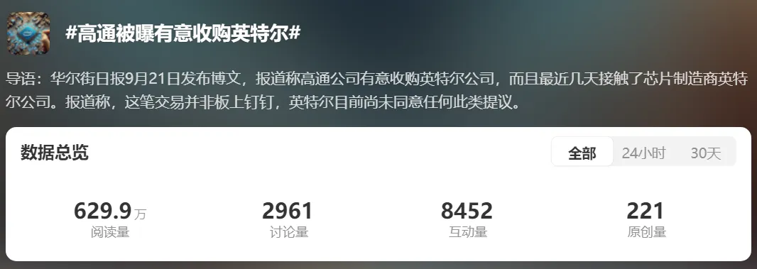 前段時間的一條“高通被曝有意收購英特爾”的話題更是沖上了熱搜榜,引發大量網友討論。