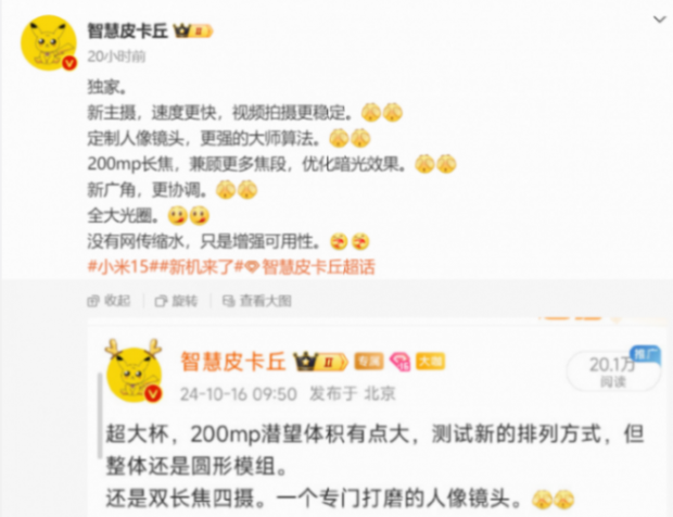 據(jù)博主@智慧皮卡丘 爆料,小米15 Ultra后置四攝均有升級:采用5000萬像素一英寸大底主攝,2億像素三星ISOCELL HP9潛望長焦鏡頭,此外還有一顆5000萬像素超廣角和新的定制人像鏡頭(直立長焦)。