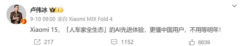 而此前盧偉冰也曾透露,小米15系列新機將基于澎湃OS 2.0系統(tǒng)和驍龍8 至尊版處理器帶來“人車家”全生態(tài)的AI體驗。