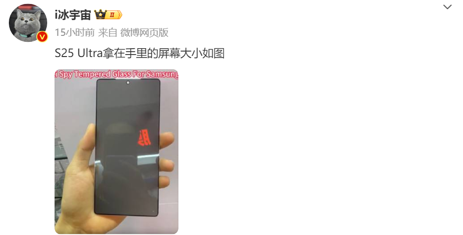 同時,該博主曬出的三星Galaxy S25 Ultra手機的持握實拍圖顯示,新機將采用對稱極窄邊框設計,正面搭載一塊居中挖孔顯示屏,內置一顆自拍鏡頭,屏幕頂部還有一個聽筒揚聲器,機身右側為電源鍵和音量調節鍵。
