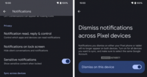 用戶在某臺Pixel手機或平板上消除通知后,另一設備上的相同通知將一起消失。谷歌表示,這一功能旨在解決重復通知的問題,提升用戶體驗。