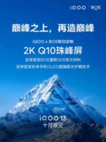 iQOO手機(jī)的官方消息則顯示,“巔峰之上,再造巔峰!iQOO攜手京東方BOE 為iQOO13聯(lián)合定制2K Q10珠峰屏!①全球首發(fā)BOE最新Q10發(fā)光材料,亮度、色彩、功耗、壽命相比上一代全面進(jìn)階;②全球首發(fā)安卓手機(jī)OLED圓偏振光護(hù)眼技術(shù),全面開啟硬件護(hù)眼新時(shí)代。10月底見!”