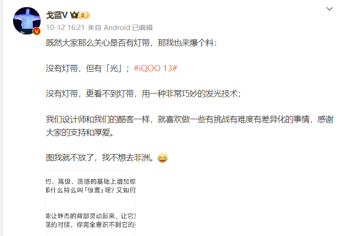 與此同時(shí),iQOO 最新的預(yù)熱中也提到了新機(jī)外觀的部分細(xì)節(jié)信息。