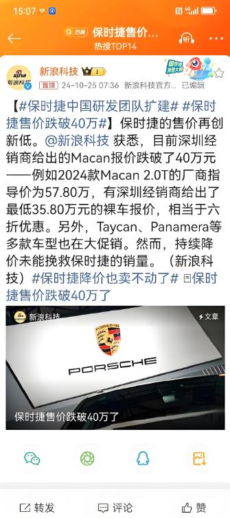 保時捷Macan跌破40萬?保時捷經銷店回應
