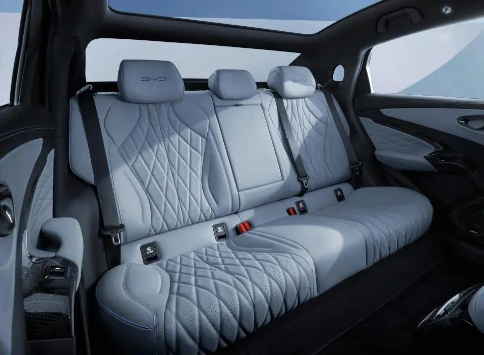 在車(chē)身尺寸上,海豹EV有著4800x1875x1460mm的長(zhǎng)寬高,以及2920mm的軸距,腿部空間是完全沒(méi)有問(wèn)題的,頭部空間雖然有點(diǎn)擁擠,但是對(duì)比同級(jí)別來(lái)看,都是差不多的體驗(yàn)。