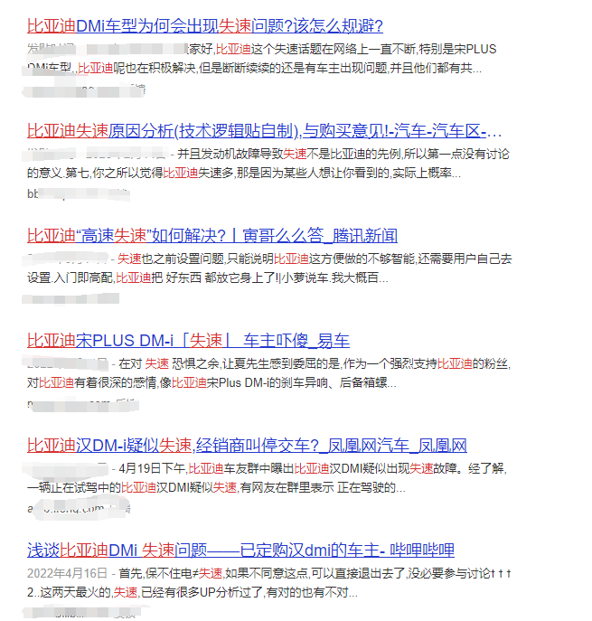 當(dāng)然了,失速并不是針對(duì)所有的混動(dòng)車型,而是部分的混動(dòng)車型;以比亞迪為例,“失速”的案例不在少數(shù),用百度詞條搜就能看到抱怨該缺陷的不止一例,最可怕的是現(xiàn)在網(wǎng)上已經(jīng)開始有教程教消費(fèi)者如何避免失速問題。