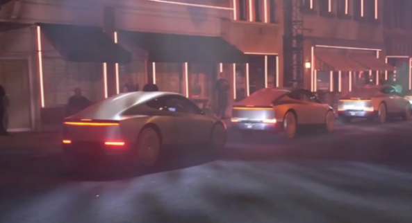 首先Cybercab的外觀設計是非常具有科幻感的,直播現場的遠射LED燈光,可投射光影畫面,并且是貫穿式的燈帶,在外觀的設計部分,最大的亮點就是國內現在喜歡用的剪刀門的設計在運用到了該車型上,不知道量產版會不會改成正常版本。除此之外,這款車是沒有配備外后視鏡,加上雙門的設計,確實是很別致的設計的。