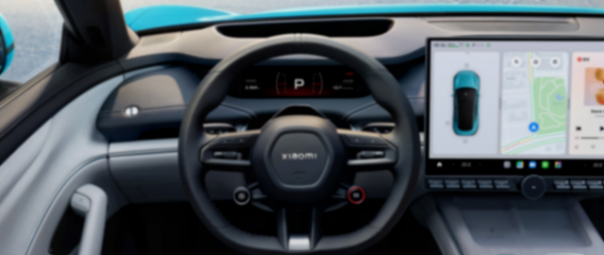 內飾部分搭載16.1英寸3K分辨率中控屏、56英寸HUD、7.1英寸翻轉式儀表屏,以及2塊原生車機系統的小米Pad后排拓展屏,匹配的是驍龍8295座艙芯片,可以實現五屏聯動。