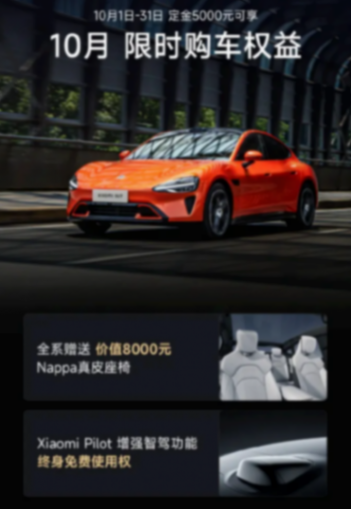 最后,就是10月份的購車權益,2024年10月1日0時至2024年10月31日24點前參與下定,并成功支付5000元定金的用戶,可享受價值8000元Nappa真皮座椅、小米智能駕駛增強智駕功能終身免費兩項主要政策,仔細來看,這與前幾個月的權益基本沒差。