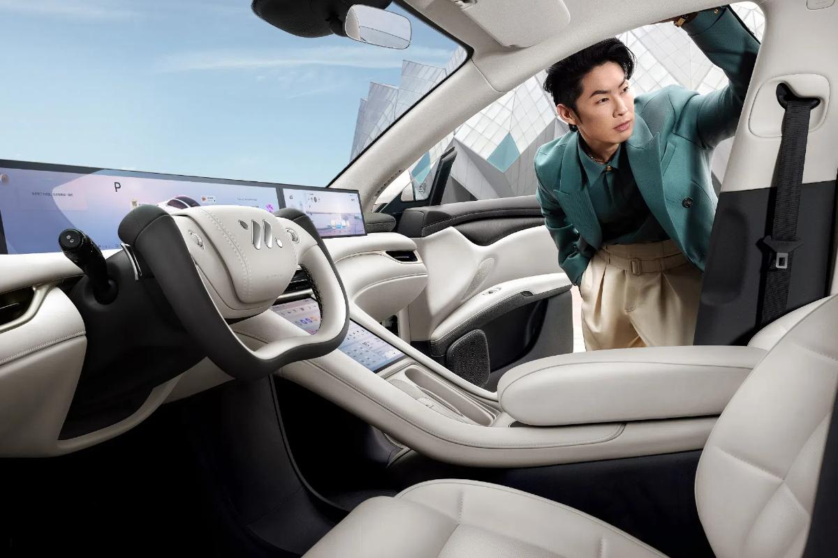 內(nèi)飾部分采用了貫穿式可升降中控屏,主屏幕尺寸為26.3英寸,副駕娛樂屏尺寸為15.5英寸,副儀表臺(tái)處配備10.5英寸液晶觸控屏。升級(jí)最大的地方就是8155級(jí)的車機(jī)芯片改為了9295級(jí)的車機(jī)芯片。在車機(jī)操作系統(tǒng)上,能夠提升一定的流暢性,這也是與老車主相比最大的差別了。