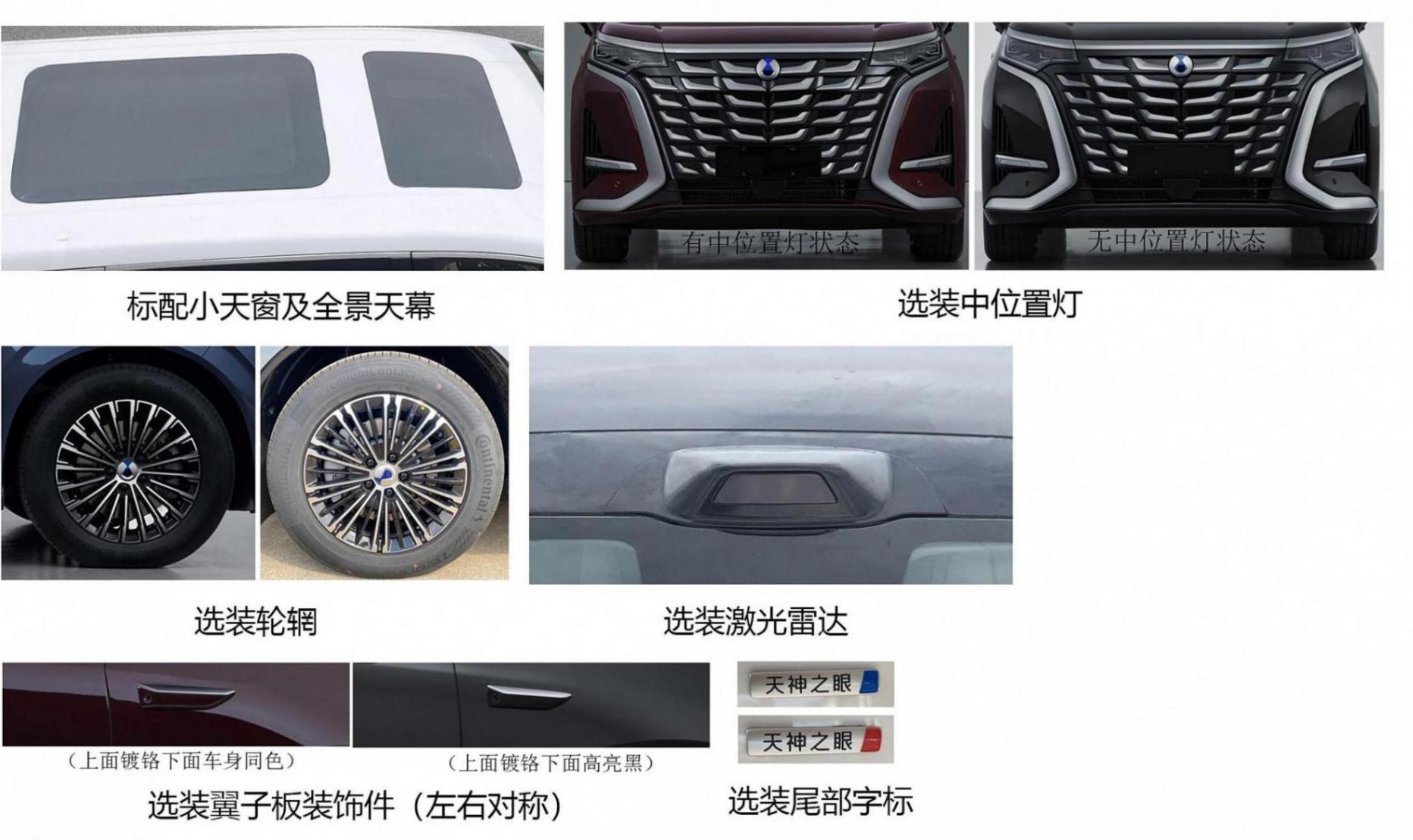 大塊頭造就了新款騰勢D9大空間的表現(xiàn),它有一個很大的后備箱,并且第三排的座椅也支持前后移動。此外,在申報的細節(jié)方面,新款騰勢D9有全景天窗+普通天窗版,采光面積更大,新車還可以選擇激光雷達,激光雷達版車型還能選擇車尾“天神之眼”字標。在動力方面,新款騰勢D9搭載的是第五代DM技術(shù),它采用1.5T發(fā)動機和電動機組合,插混版純電續(xù)航有145km、155km,它的油耗會更低。