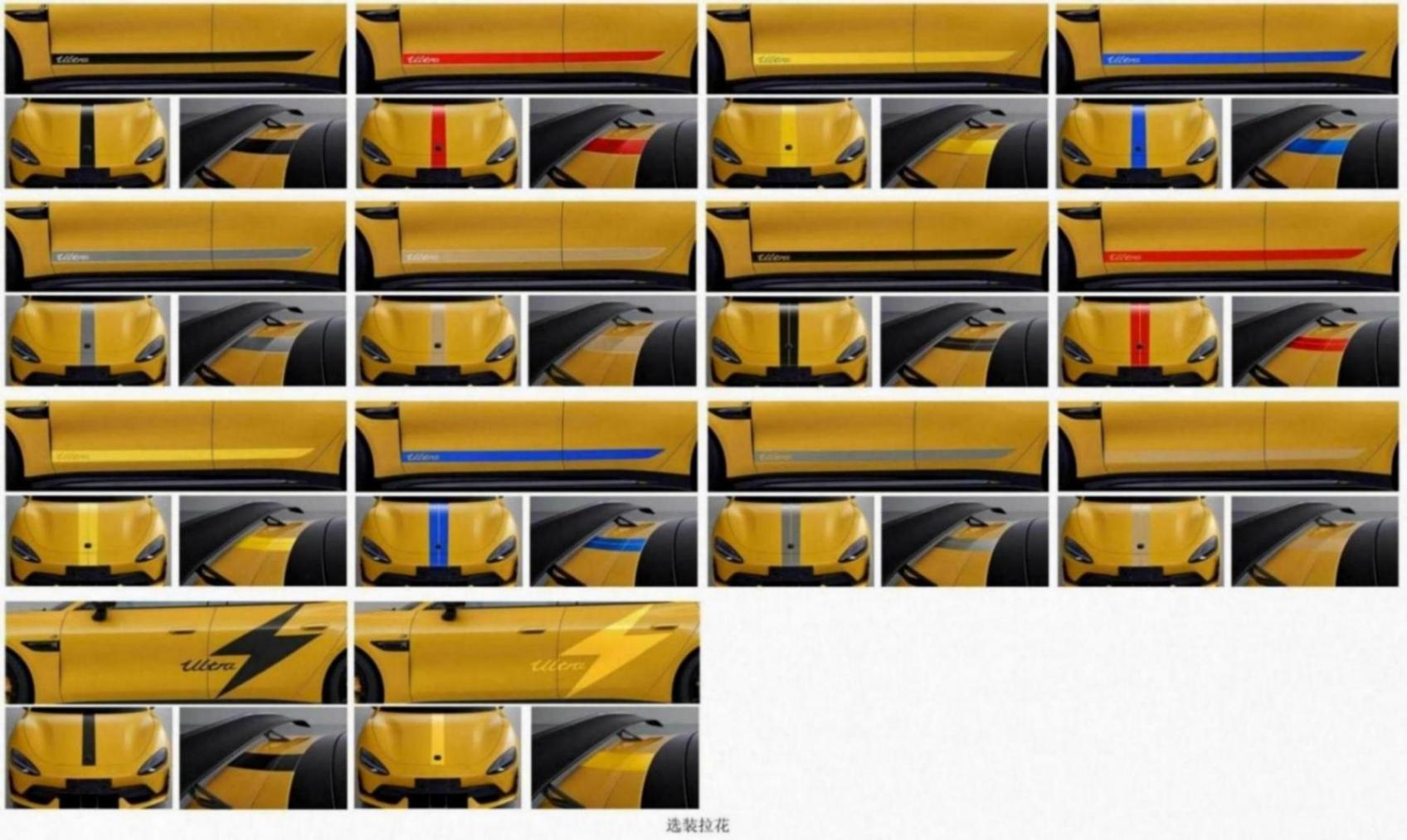 在申報的細節方面,我們可以看到小米SU7 Ultra原廠就有電動折疊的尾翼,后期改能夠選擇黑色的固定尾翼,它還有很多個性化的車身貼可選,能夠展現個性。在動力方面,小米SU7 Ultra搭載的是三電機的布局,最大輸出功率分別為288千瓦、425千瓦、425千瓦,系統綜合最大輸出1138千瓦,最大扭矩1770牛·米,百公里加速1.98秒,比很多千萬級的超跑還要快。小米SU7 Ultra的CLTC續航里程達到了620km,而且11分鐘就可以將電量從10%充至80%。