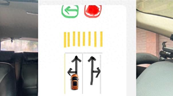 在這樣的一個(gè)紅綠燈路口直行,結(jié)果走到了左側(cè)的左轉(zhuǎn)直行合并車道,被后邊左轉(zhuǎn)的車不斷喇叭催促。這個(gè)時(shí)候,我們?cè)撝苯幼筠D(zhuǎn)讓他們,還是壓實(shí)線變道右側(cè),或者闖紅燈直行讓后車呢?