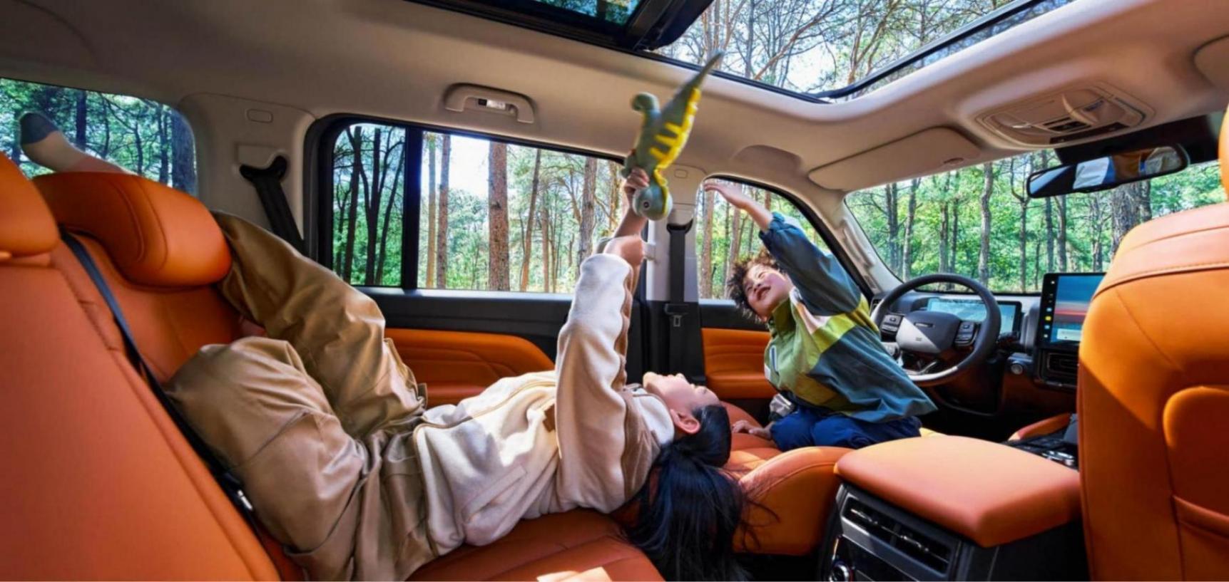 甚至,新車還將第二排,第三排座椅設(shè)計(jì)成平整狀態(tài),這不就是這兩年流行的大床設(shè)計(jì)嘛?
