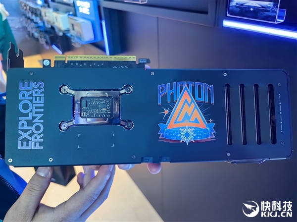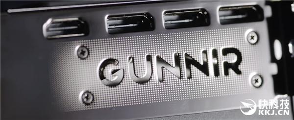 值得一提的是,尾部擋板上還在一個(gè)HDMI 2.1和三個(gè)DP 2.1接口旁邊,特意雕刻了GUNNER標(biāo)識(shí)字樣,不但更養(yǎng)眼,也可以提升散熱效果。