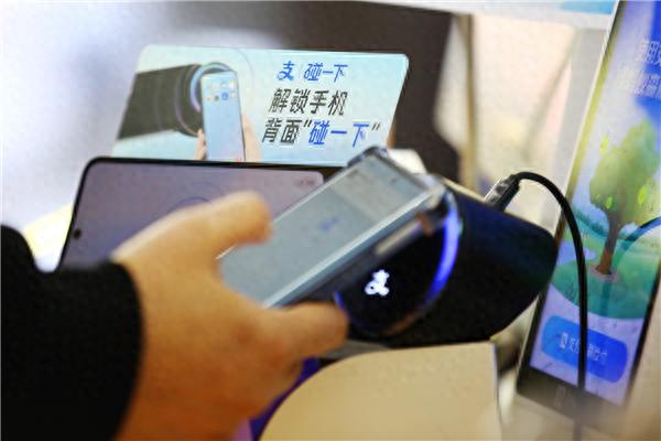 相比與以往的掃碼支付更方便,通過手機的NFC就能支付,解鎖手機后,不用打開支付寶,在商家收款設備碰一下就能支付。