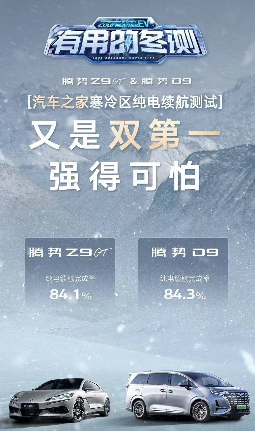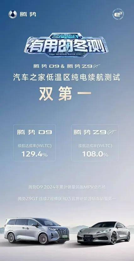 在2024汽車之家“有用的冬測”中,騰勢D9和騰勢Z9GT斬獲雙溫區(qū)純電續(xù)航測試雙第一,其成績在50多款參與測試的新能源車型中斷崖式領(lǐng)先,再次證明騰勢汽車引領(lǐng)中國新能源豪華崛起的非凡實力。