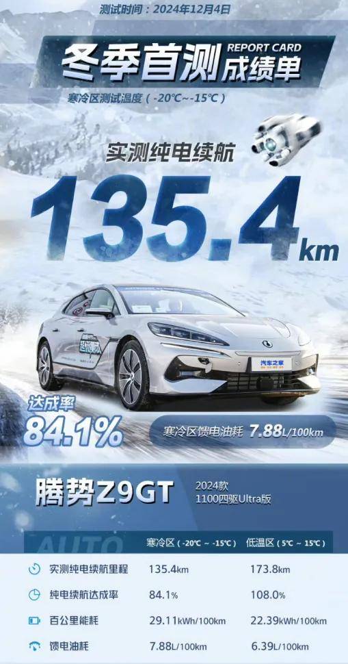 騰勢Z9GT同樣是“頂級高手”,低溫純電續(xù)航里程達到173.8km,續(xù)航達成率108.0%,真正做到實力在線,遙遙領(lǐng)先。