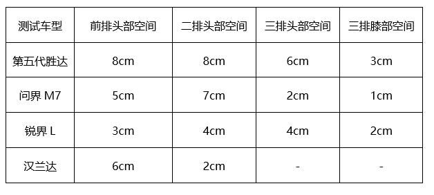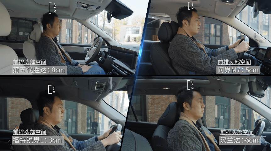 第五代勝達、問界M7、福特銳界L、漢蘭達前排頭部空間實測