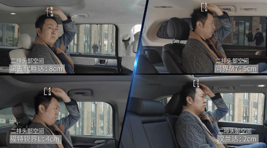 第五代勝達、問界M7、福特銳界L、漢蘭達二排頭部空間實測