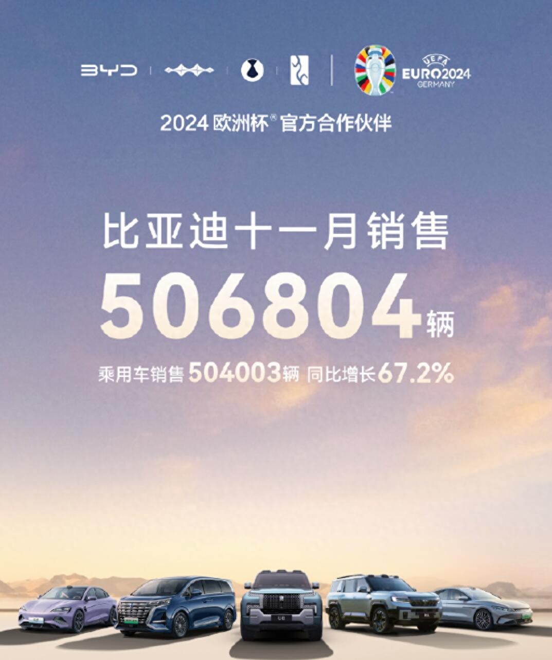 11月份的比亞迪,還是“穩”字當頭。官方發布的銷量數據,11月份,比亞迪新能源汽車銷量為50.68萬輛。整體來看,今年1-11月,比亞迪新能源汽車銷量為375.73萬輛,同比增長40.02%。從當前的情況看,2024年400萬的銷量目標,比亞迪有望超額完成任務。現在的比亞迪,真的攔不住了!