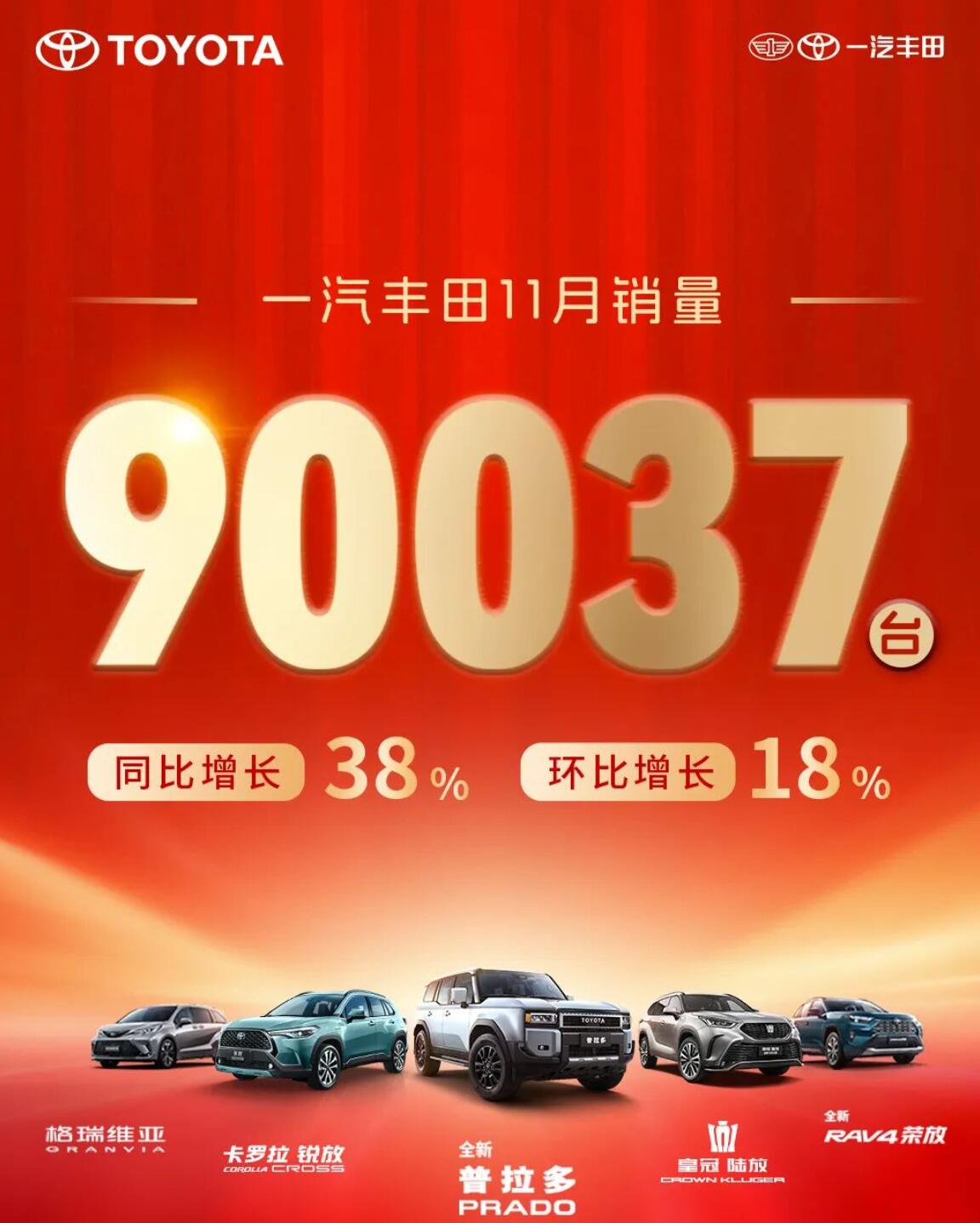一汽豐田:11月銷量90037輛