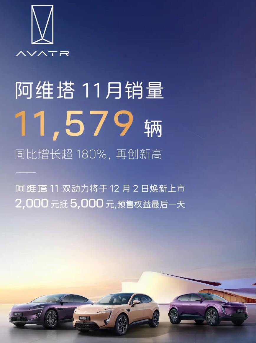 阿維塔:11月銷量11579 輛