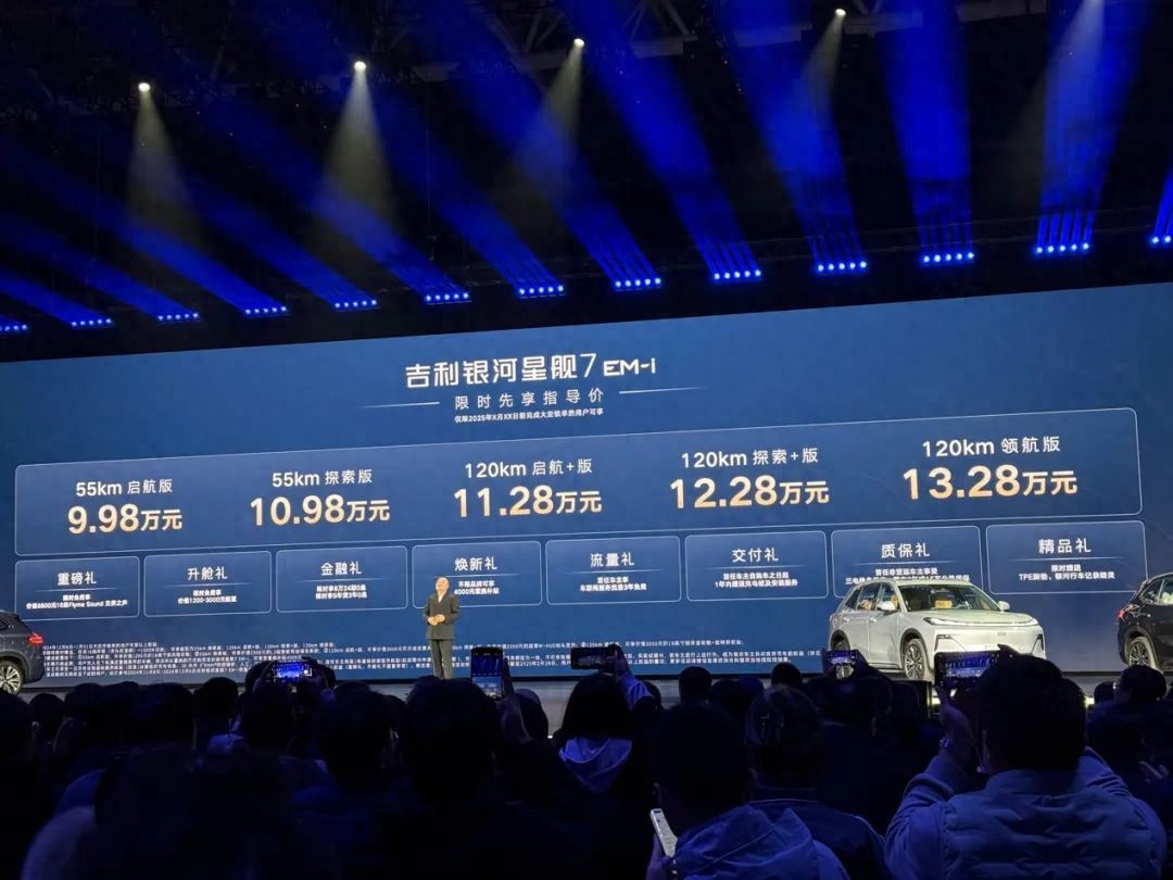 吉利銀河今年真的是火力全開,上了兩款純電E5和星愿全部爆單,如今第三臺新車星艦7也上市了,并給到了一個難以抗拒的起售價:9.98萬元起,又是一個要賣爆的節奏。
