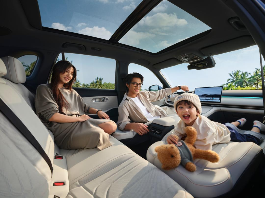 夠大,A級車的尺寸,B級車的空間,星艦7延續了此前E5和星愿的越級空間表現,得房率高達84.3%,后排頭部、肩部、膝部空間以及坐墊長度、高度、厚度均同級領先,告別新能源“小板凳” 的感覺。全車34處儲物空間,后備廂采用上下隔板設計,帶來428L+100L下沉隱藏空間共528L的超大后備廂,家用沒的說。