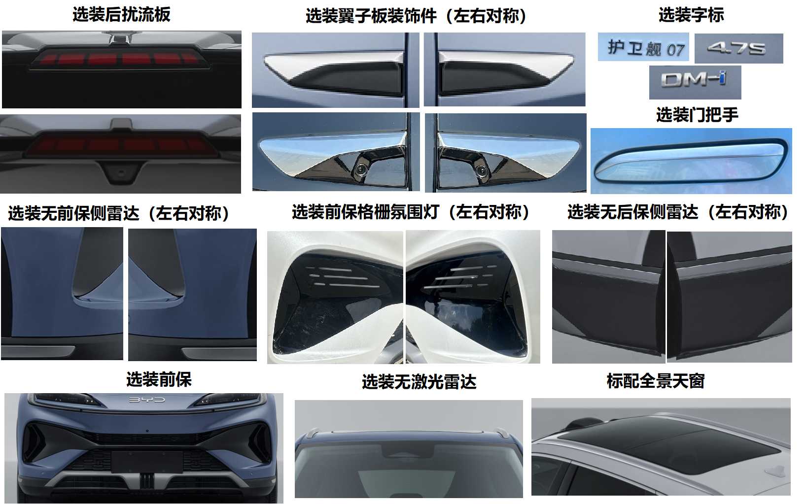 另外,從選裝配置來看,新款海豚將提供黑色車頂、全景天幕等選裝,更關鍵的是,支持選裝三目攝像頭、前保側雷達、后保側雷達等配置,智駕能力將得到增強。