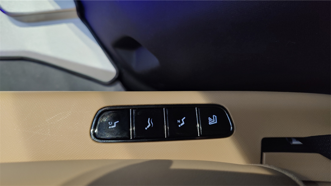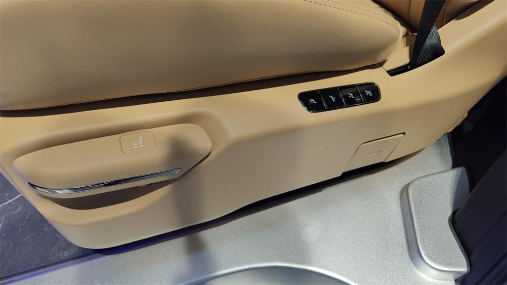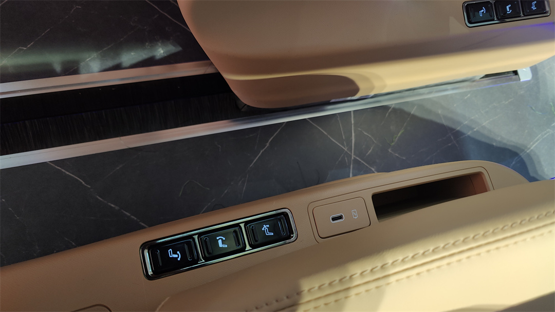 同時還帶有手動的橫向移動調節,以便于空出三排的進出通道。座椅內外側都有獨立的扶手,不過在我看來,可以適當考慮下去掉外側扶手,既能拓寬中央通道、又能加寬椅面。另外還帶有通風、加熱、按摩以及一鍵零重力坐姿的功能,座椅內側還有Type-C的充電口。