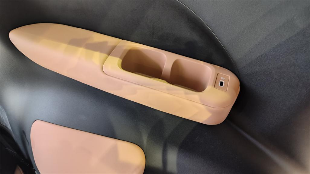 另外,杯架所在的位置就是后輪拱的上方,考慮到輪拱向內占據的座椅空間還是不少的,所以在杯架下方的輪拱內壁增加了軟包,作為外側座椅的補充。