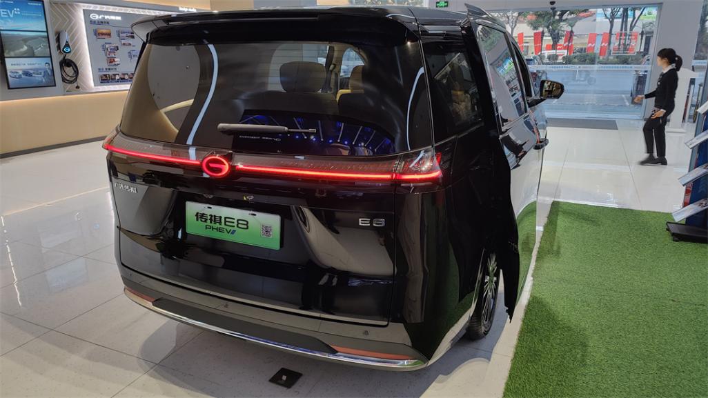 這臺純電續航150km的插混版傳祺E8+,店里在賣的配置只有一個高配的MAX+版,落地價格大致在24萬左右。而油混版的E8榮耀版也只有高配在售,價格要便宜4萬左右,雖然智駕和二排的座椅配置要低上一大截,但是作為家庭工具車的話,顯然油混版還是劃算不少。