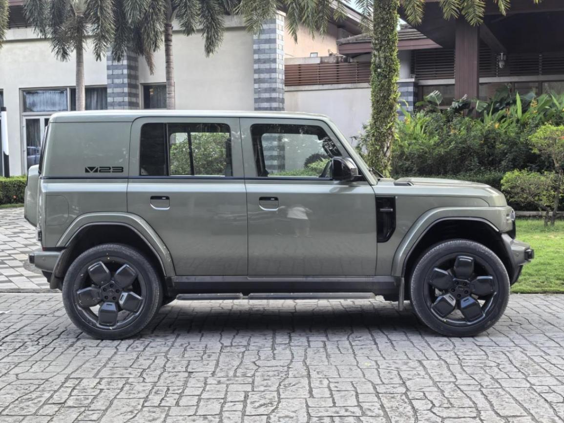 首先我們知道iCAR V23是一款設計導向的產品,也就是先明確了設計優先。而設計的出發點則是越野車的“文脈”,所以整個姿態比例都是非常越野向。比如車身寬度1.9米、車身高度1.84米,這種寬高比帶來了越野車的“穩定感”。同時,iCAR V23采用四輪四角的設計,43°接近角、41°離去角、210mm離地間隙,都極具越野車特征,給整車帶來一個“高姿態”。