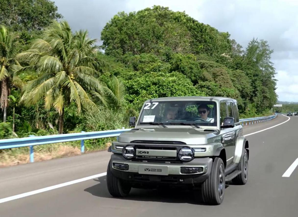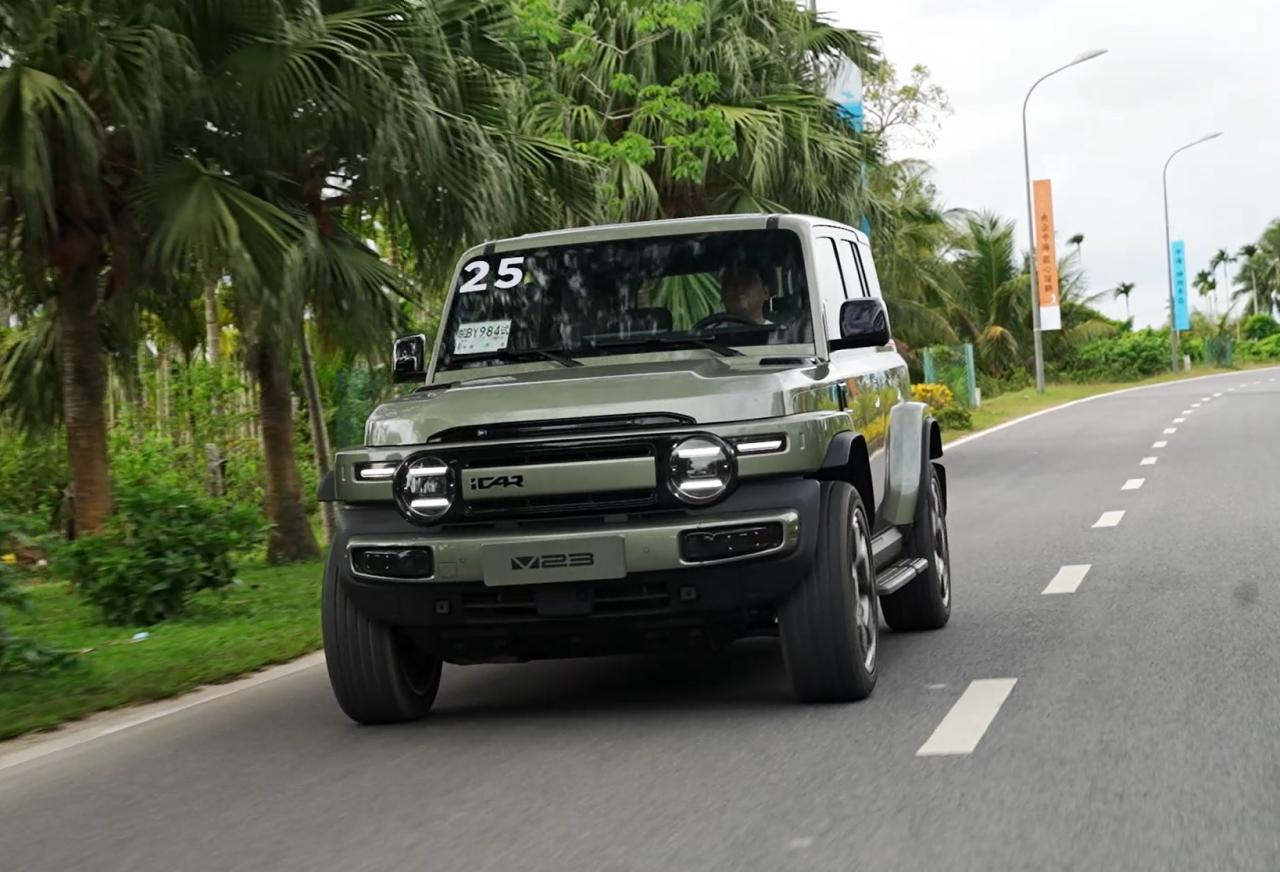 究其原因,iCAR V23采用的前麥弗遜式、后五連桿式獨立懸架主要就是主打一個穩定感。由于四驅版的胎寬達到了265、車身寬度達到了1.9米,并沒有吉姆尼那種高聳的姿態,所以開起來的第一感覺是整個車穩態很好。