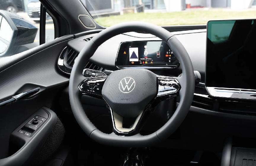 進(jìn)入車(chē)內(nèi),大眾ID.與眾采用了家族最新的設(shè)計(jì)語(yǔ)言,三幅式多功能方向盤(pán)采用平底設(shè)計(jì),下盤(pán)幅采用啞光金屬設(shè)計(jì),搭配兩側(cè)按鍵區(qū)域的鋼琴烤漆涂鍍工藝來(lái)看,為車(chē)內(nèi)增添了不少時(shí)尚精致感。而在靜態(tài)體驗(yàn)方面,按鍵反饋清晰,配合5.3英寸全液晶儀表使用,有較好的用車(chē)便利性和科技感。中控屏采用一塊15英寸懸浮式大屏,內(nèi)置最新的車(chē)機(jī)系統(tǒng),支持易用的語(yǔ)音識(shí)別控制、4G車(chē)聯(lián)網(wǎng)、OTA升級(jí)等功能。