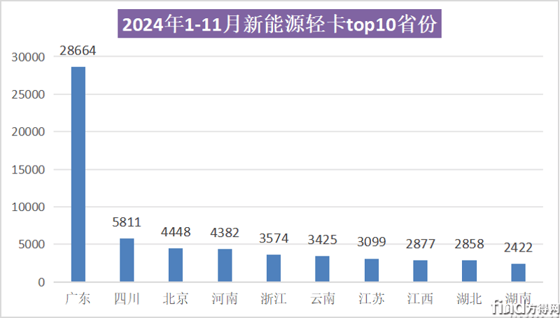 2024年1-11月,廣東、四川、北京為TOP3省份。其中,北京市政府組織實施《關于進一步加強充電基礎設施建設管理工作三年行動計劃(2023-2025年)》,高水平建設充電基礎設施網絡體系。解決了新能源物流車的充電難題,提高了充電設施的覆蓋率和使用效率。為新能源物流車的普及提供了有力的基礎設施保障。