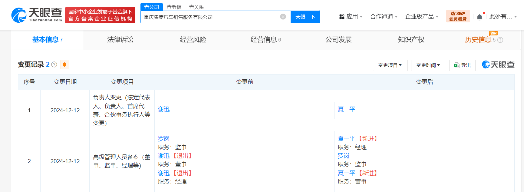 近日,重慶集度汽車銷售服務有限公司的工商登記信息發生了重要變動,謝迅不再擔任該公司的法定代表人、經理及董事職務,這些關鍵職位現由夏一平接任。這一人事調整引發了業界廣泛關注。