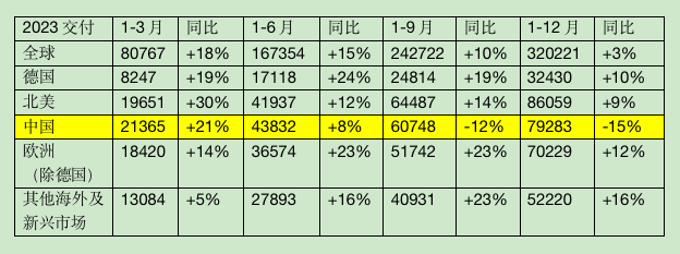 保時捷2023財年交付情況,圖:21世紀經濟報道