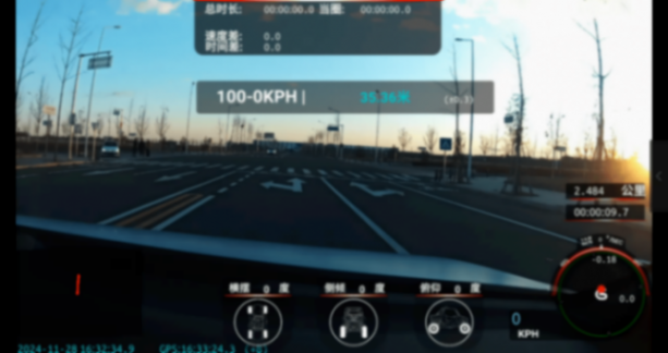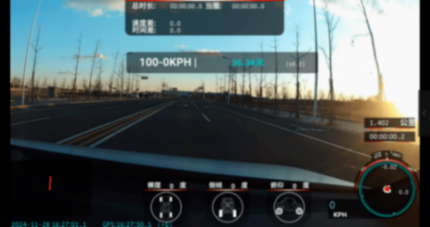 同樣,在100-0的連續(xù)30次剎停中,其成績還稍有波動,從最開始的33米左右到后期36米左右。雖然有一點點衰減,但同樣在可接受的范圍之內,畢竟是一臺兩噸多的純電車型。