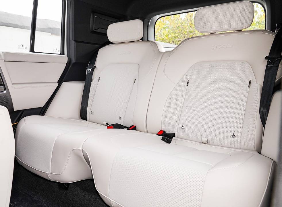 在座椅方面,iCAR V23的前排座椅造型寬大厚實,腰托飽滿,能夠提供極佳的支撐性,乘坐體驗舒適。而后排座椅的放置位置相對靠后,具有良好的隱私性,適合兩個人乘坐。相比之下,悅也Plus的前排座椅則顯得比較單薄,內部填充物軟硬程度適中。后排乘坐空間相對局促,同樣只適合兩個人乘坐。