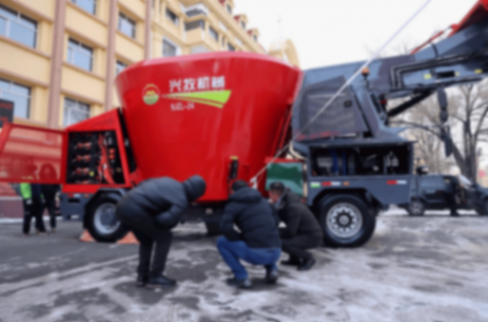 黑龍江省奶業協會常務副會長張維銀仔細詢問新能源自走式攪拌車的性能
