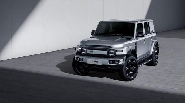 iCAR V23采用越野車經典的“方盒”硬朗設計,車身長度、寬度、高度分別為4220x1915x1845mm,軸距2735mm,將越野車經典的近1-1高寬比和四輪四角元素體現得淋漓盡致。而且標配21寸大輪轂,視覺沖擊力強。圓形大燈、C柱盲窗、小書包等經典越野元素也應用于在設計細節上。