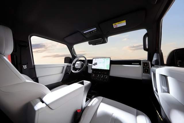 在內飾方面,新車采用了大量的平直線條設計,方向盤也采用了雙色設計,整體風格更年輕、更時尚。iCAR V23配備15.4英寸中控屏,搭配高通驍龍8155芯片,支持carPlay、車聯網和語音控制。屏幕下方的圓形旋鈕和裸露的鉚釘設計為汽車增添了一點復古氣息。新車沒有標準的儀表盤,可以選擇一個小尺寸的圓形儀表盤,其可以顯示一些簡單的信息,如速度、檔位、功率等。扶手箱預留穿線口,內置60W快充,扶手箱下部可放4瓶水。